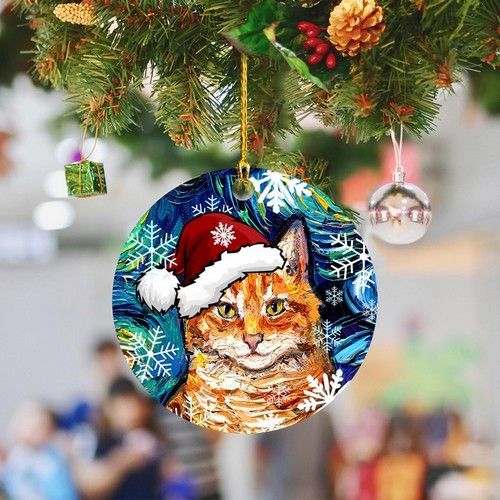 Décoration de noël chat peint .