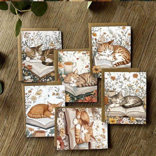Cartes de Vœux ou pour tout autre message : Chat & Livre