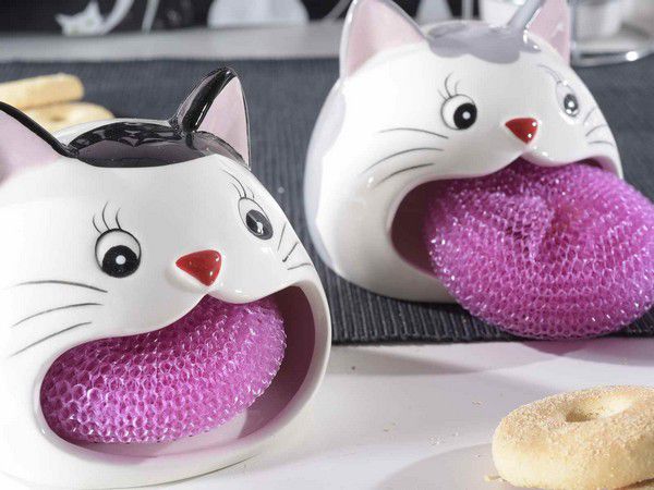 Chat en céramique porte éponge avec éponge incluse