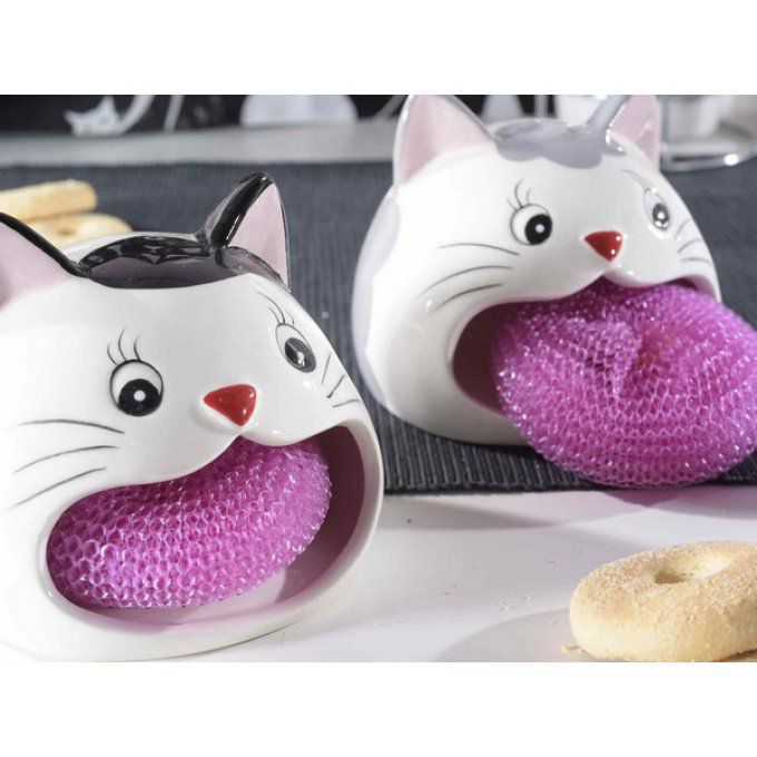 Chat en ceramique porte éponge avec éponge incluse