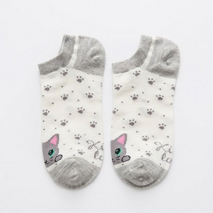 Chaussette de cheville chat gris