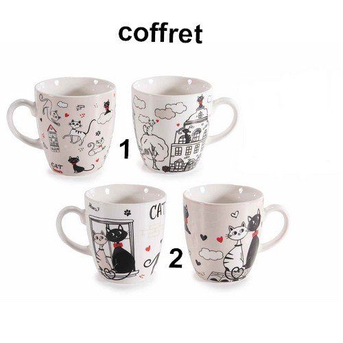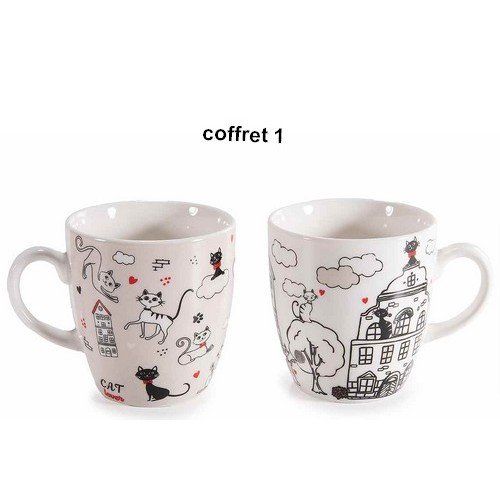 Coffret cadeau avec 2 tasses à café en porcelaine décorées d'un imprimé chat
