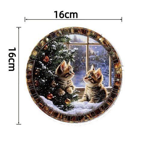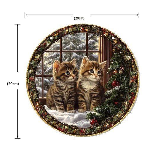Décoration de noel à suspendre avec de mignons chatons à la fenêtre .