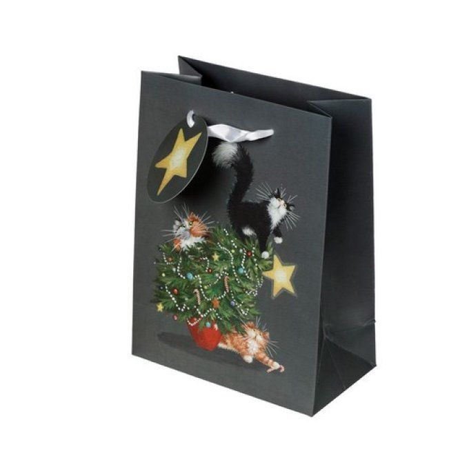 Pochette cadeau kim haskins, les chats dans le sapin. Dimensions Hauteur 23cm Largeur 17cm Profondeur 9cm