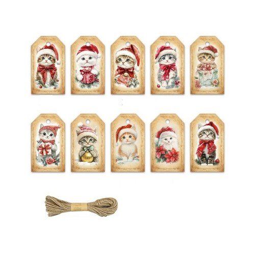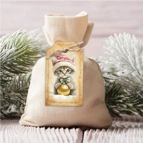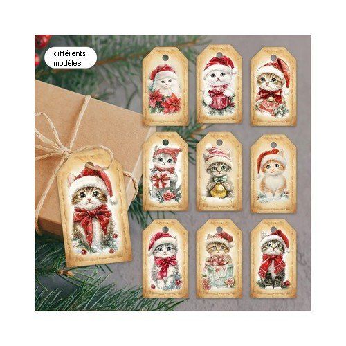 Paquet de 5 étiquettes cadeau chats pour noel .