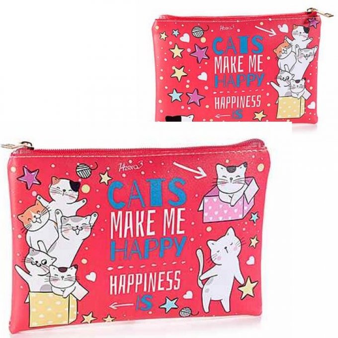 Pochette chats en similicuir avec imprimé "Cat Life" zippé 14zero3