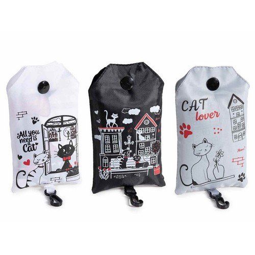 Sacs de courses colorés refermables/réutilisables avec housse en polyester, imprimé chat.